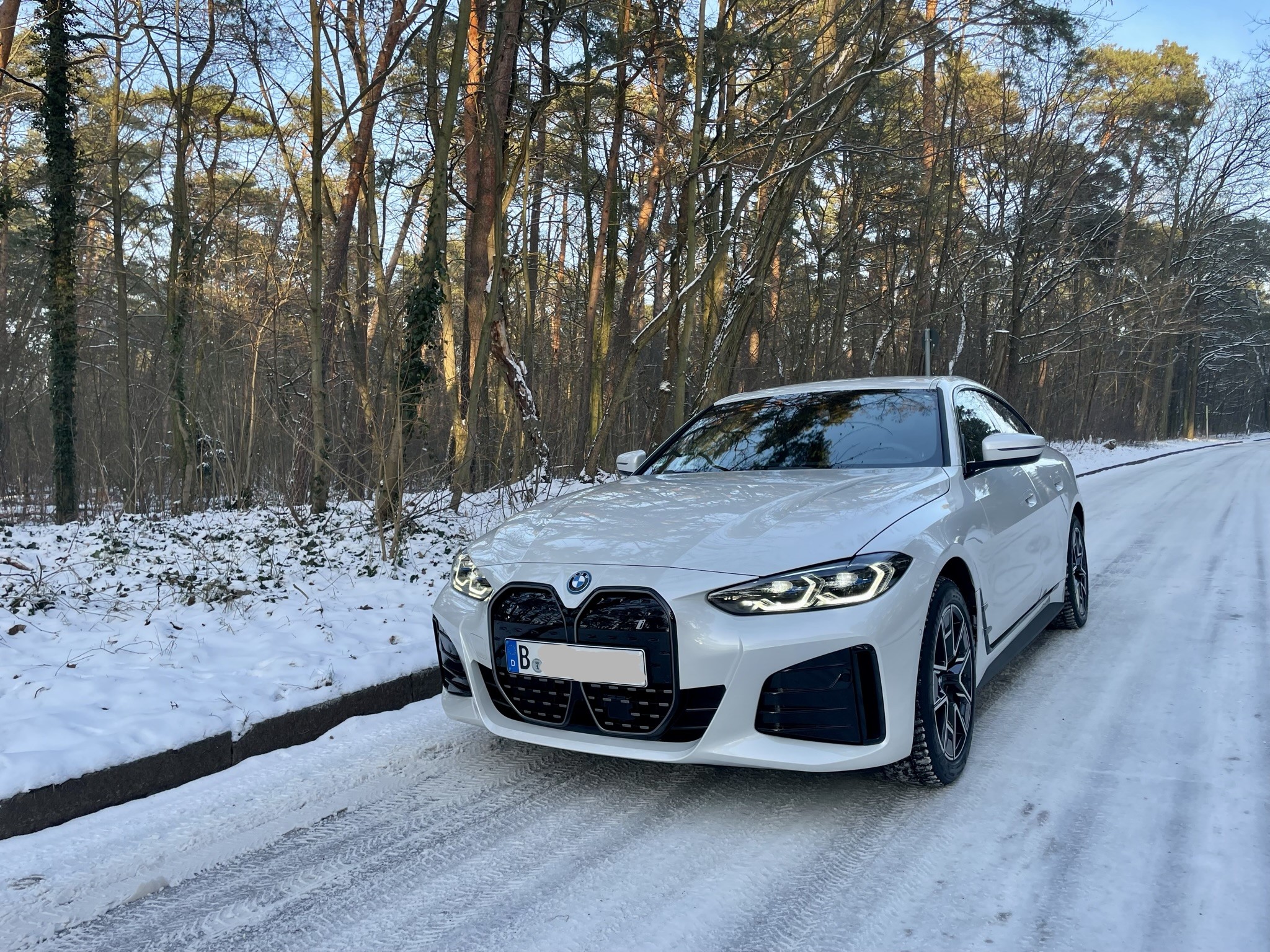 BMW i4 edrive40 Mineralweiß auf Winterrädern