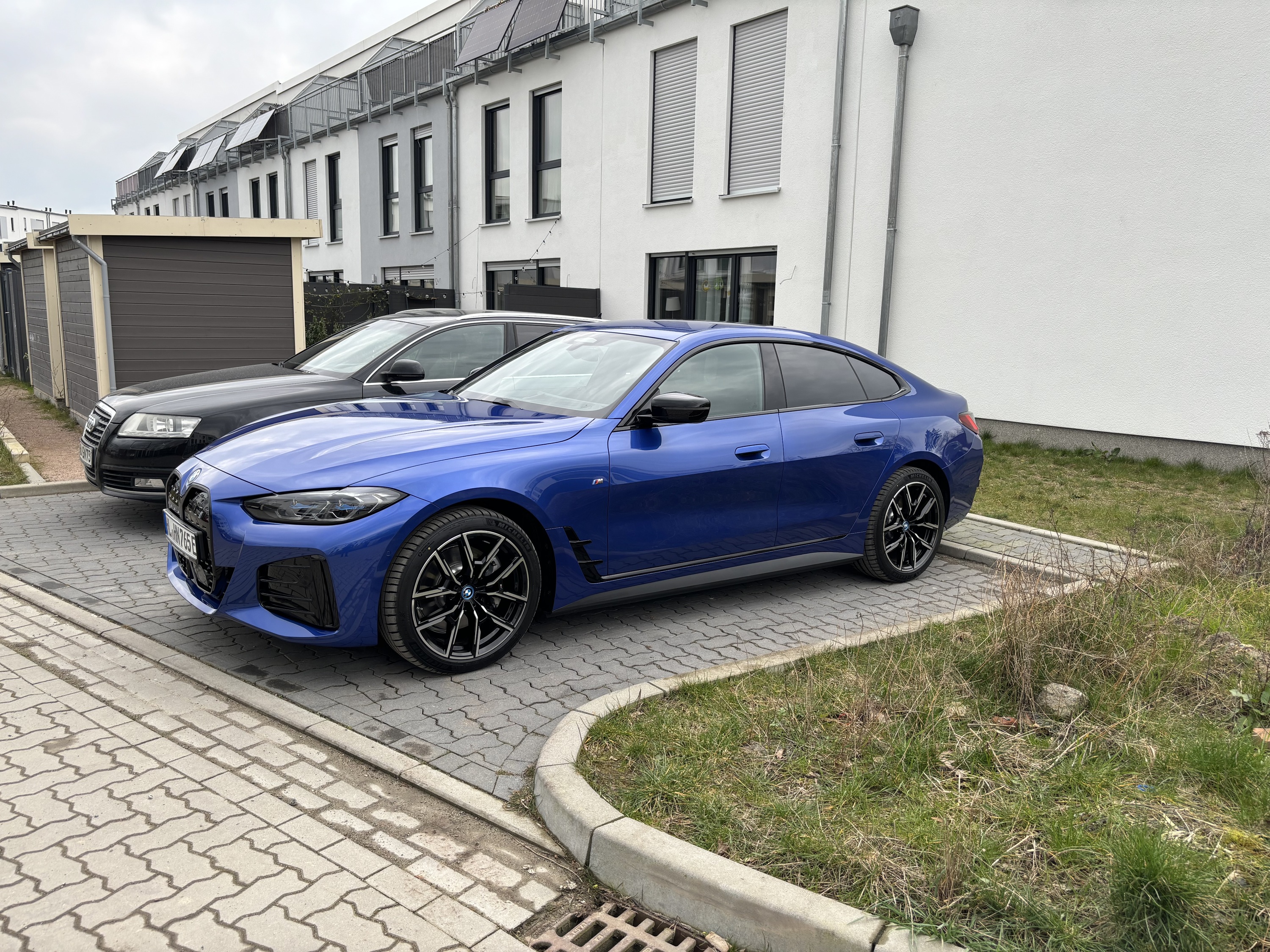 BMW i4 M Portimao blau M Paket mit erweiterter Shadow Line