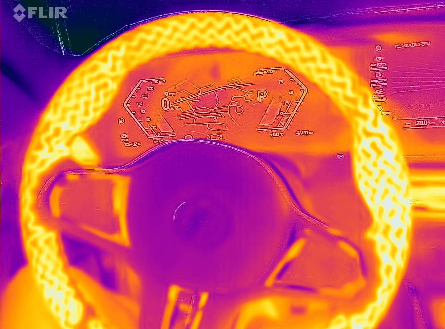 Also erstmal: das Lenkrad ist noch bei einem Vorfacelift-Fahrzeug Bj 2022 aufgenommen worden nach einer Laufzeit von vielleicht zwei oder drei Minuten, mehr nicht. Da war die Lenkradheizung spürbar wärmer als bei meinem jetzigen 2025er Modell. Das Foto davon stelle ich gleich nochmal zu Vergleich rein.
